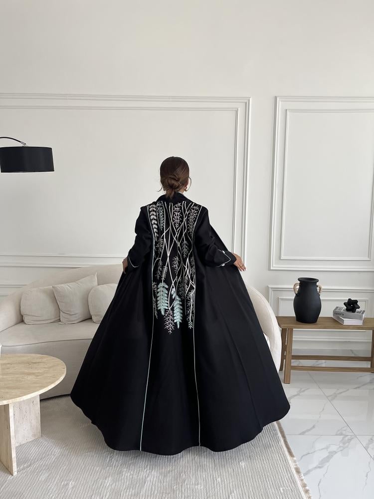 عبايه بتطريز بالخلف مع قيطان