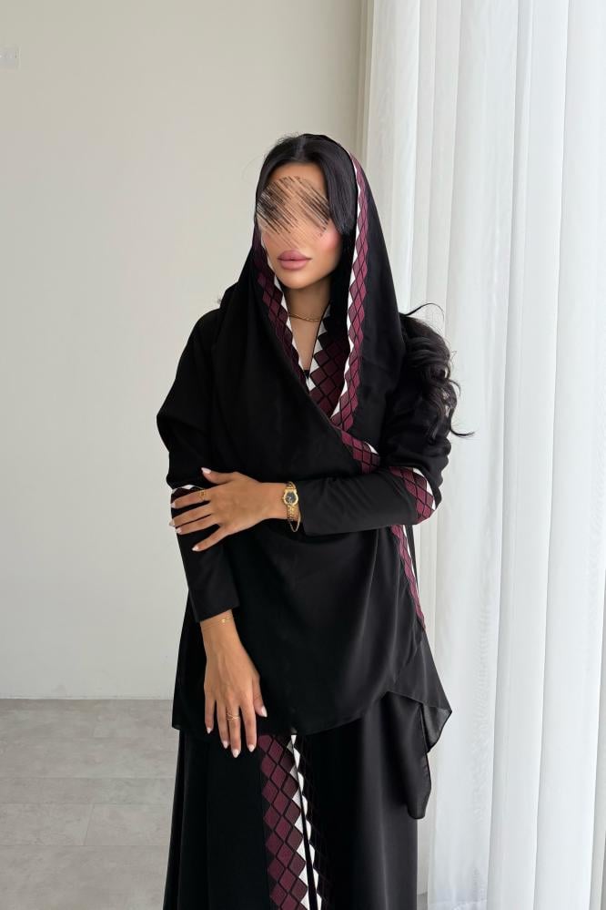 التفاصيل : تطريز بالياقه والأكمام + استرتش طرف الاكمام